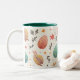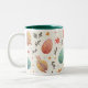 11oz Mug, It has cute easter egg patterns with white background, and its inside colour is green.