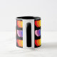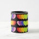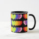 Warm their heart and tummy with this super cute Valentine's Day themed coffee mug! Lovely mug with art by Buttercup's Clothing and Collectables features a repeating pattern of rainbow colour hearts against a black background. Happy Valentine's Day and bottom's up!