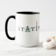 Mug with "Statistician" logo, which incorporates a probability density function and three boxplots with whiskers and data outliers.