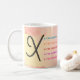 Cette tasse sera un favori pour tout le monde, de votre petite-mère douce à votre soeur adolescente. Avec le bon message, un mug peut devenir le compagnon précieux de n’importe qui pour les années à venir. Ce design présente une belle lettre dessinée à la main "X" en noir cursif sur un arrière - plan d'aquarelle étonnant. Le côté gauche présente un dégradé chaud de jaune à rose, tandis que le côté droit affiche un dégradé doux de rose à jaune. Autour de la lettre sont des mots vibrants de différentes couleurs, dont le bleu, l'orange, le rouge, le violet et le rose, mettant en évidence des traits positifs commençant par la lettre "X". L'effet global est un design visuellement attrayant et stimulant qui célèbre la beauté de la lettre "X" et ses qualités associées. L'arrière - plan aquarelle ajoute une touche d'élégance et de sophistication, ce qui rend ce design parfait pour des raisons d'inspiration ou de motivation.