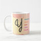Cette tasse sera un favori pour tout le monde, de votre petite-mère douce à votre soeur adolescente. Avec le bon message, un mug peut devenir le compagnon précieux de n’importe qui pour les années à venir. Ce design présente une belle lettre "Y" dessinée à la main en noir cursif sur un arrière - plan d'aquarelle étonnant. Le côté gauche présente un dégradé chaud de jaune à rose, tandis que le côté droit affiche un dégradé doux de rose à jaune. Autour de la lettre sont des mots vibrants de différentes couleurs, dont le bleu, l'orange, le rouge, le violet et le rose, mettant en évidence des traits positifs commençant par la lettre "Y". L'effet global est un design visuellement attrayant et stimulant qui célèbre la beauté de la lettre "Y" et ses qualités associées. L'arrière - plan aquarelle ajoute une touche d'élégance et de sophistication, ce qui rend ce design parfait pour des raisons d'inspiration ou de motivation.