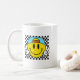 Mug Yellow Smile Face Cute Checkered Peace Smiling Hap