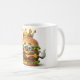 "Burger Lover's Brew" The mug is printed with layers of a burger: bun, lettuce, tomato, cheese, and patty.
