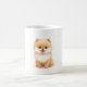 an adorable Pomeranian puppy on a plain white background, emphasizing its fluffy fur and cheerful expression. Use warm shades of tan, cream, and light brown to depict its soft coat. Add cute details like round, sparkling eyes, a tiny black nose, and a playful tongue sticking out. The overall vibe should be friendly, lovable, and irresistibly cute, with a minimalistic focus on the puppy.
