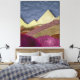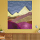 An abstract landscape with unique colours and textures showing a mountain scene in shades of purple, tan, beige, and brown.