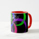 This geometric mug features a custom multi color 3D circular interchange theme. Text customization and additional mug colors options are available.