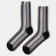 A Pair Of Multi Colored Vertical Lined Unisex Crew Sock In Browns, Black And Gray Colors
