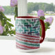 Colourful multi colour crocheted patterns in bright blue, green, maroon, white, and pink shades wrap around theses mugs. The original crochet needlework was handcrafted with love. These beautiful mugs have the feel of cozy warm comfort all wrapped in love and make wonderful gifts.