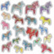 These Dala horses were designed by Julia Morrill. Some were drawings and paintings while others were made on carved wooden horses that she made. Many are on red horses, some on yellow, blue, pink,green and purple. This is the widest selection of colours and styles on a single sticker sheet that we've ever seen.