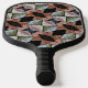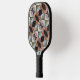 A Pickleball paddle designed with embroidered floral pillows in a patchwork pattern, it's a fun and beautiful illusion that is both traditional and boho chic. Deep, rich earthy multi colour different patterns on each side of the of the paddle in beautiful patterns accented with black..