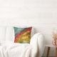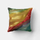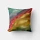 This stylish pillow features a photo of multi-coloured fabric reminiscent of a rainbow. The colours shade from green to blue to red to golden yellow, and back to green. The design is on both sides.