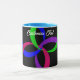 Colourful geometric 3D design that features overlapping circles. Great gift idea for anyone. Text customization and additional mug colours options available.