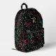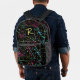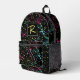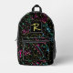 This modern backpack features a black background with paint splatters in vivid and colourful neon multi-colours. Personalize it for your needs.