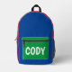 Lightweight and durable, our custom all-over-print Backpack is just what you need. The spacious interior is ideal for travel, school, gym, or any mobile storage need. Bring your stuff with you in style! Features Adjustable padded shoulder straps, two chambers on the inside for laptop storage, mesh side pockets and an identification label.