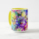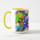 A burst of colour two toned coffee mug with yellow interior and handle.