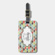 This beautiful luggage tag features a scalloped design of red, blue, brown, green, and white on front and back with areas you can customize with your name and last name initial as well as phone number or full address.
