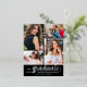 Add your favorite 4 photos on the front of these graduation party invitation postcards that feature class of and GRADUATE in chic silver, gold or rose gold foil lettering on a black background (color can be changed.) A full-size photo on the back is under your party details and deliver-to address area. **TIP: Use all horizontal photos with you in the center for best layout results. The Live Design Service can help you with the layout of your design or colors if needed. MATCHING items in our store.