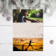 Real foil Merry Christmas in foil letters with your name and year along with 2 photos. Choose your foil colour: gold, silver or rose gold, and backer colour. Add more photos to the back or write a message.
