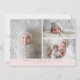 Simple birth announcement card featuring a 3 photos with the newborn's name and info on the bottom. You can add another photo and a message on the back.