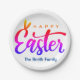 Multicolor Happy Easter- rainbow colour happy easter lettering with bunny ears and white background