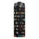 A pattern of irregular rectangles in a colour scheme of orange, red, ivory, turquoise, grey, eggplant and black.