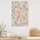 A geometric pattern of multicolor squares in a color palette of pink, coral, turquoise, green, yellow and beige.