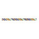An eye-catching ribbon with a multicolor pattern of diagonal stripes, in lime, yellow, orange and navy blue. The eye-catching ribbon adds a decorative finishing touch to wrapped gifts, crafts and ornaments.