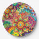Multicolored Art Deco Flower Shapes Pattern Paper Plate
