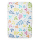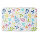 Assorted leaf silhouette illustrations in a multicolored surface pattern design of green, blues, yellow, pink and orange on a white background.