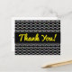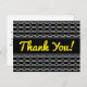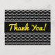 This postcard design features a multicolored chain-like pattern on a black background. It also features the appreciative message "Thank You!" on the front in yellow script-like text, along with a personalized message of gratitude on the back.