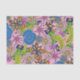 This tissue paper is a visual delight, adorned with a vibrant and intricate floral pattern. The blossoms of various shapes and sizes unfold in a symphony of colours, creating an eye-catching mosaic that brings each flower to life. The rich hues of pink, blue, purple, yellow, and green intertwine harmoniously, offering a feast for the eyes. Every detail is meticulously crafted, from the multiple layers of petals and leaves to the distinct patterns within the petals that add depth to the design. The background is filled with smaller floral elements and intricate designs that complement the larger blossoms, creating an aesthetically pleasing visual effect.