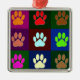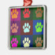 Multicolored Dog Paw Print Pattern Metal Ornament