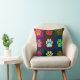 Multicolored Dog Paw Print Pattern Throw Pillow