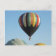 A colourful hot ait ballon that has just lifted off as well as several still inflating.