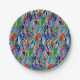 Party paper plates decorated with a mosaic pattern in bright colours.