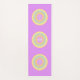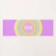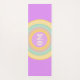 Fashion Eco friendly Yoga mat with three multicolored pastel circles on violet background. Central multicolored circles have the OM text. The OM text can be customized.