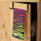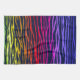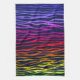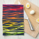 Multicolored rainbow zebra striped kitchen towel. Red, orange, yellow, neon green, blue, purple, hot pink, and black animal print pattern.