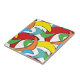 This fun graphic pattern, reminiscent of mid century modern design, has been updated with a lively palette of various colours outlined in striking black. Easily customize the background colour to suit your style.