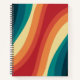 Multicolored retro style waves geometrical pattern illustration with orange, red, beige, blue and turquoise wavy stripes decoration on dark blue background