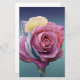 This design features a beautiful image of a rose made up of many different colors. Its petals are watered with dew.