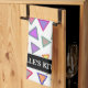 This kitchen towel design features an eyecatching pattern involving many triangles of different sizes and different colours. It also features a personalized name.