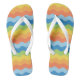 Yellow, orange, blue and green colours, a pair of flip flops designed with a multicolored wave pattern. Customize the flip flops pattern size among other options.
