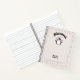 A spiral bound notebook featuring a very cute penguin juggler with multicolour polkadots on the front and back covers.