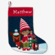 Multicultural Elf Boy with Rudolph Small Christmas Stocking