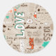 Multilingual Love Doodle Pattern Art Classic Round Sticker