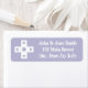 A pastel lavender return address label is decorated with a white D-pad on the left and sample text on the right for customizing to make it your own.