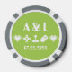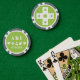Give the guests, bridesmaids, groomsmen, or anyone else attending or helping with your geeky wedding or special event a fun treat with these customizable poker chips. One side of the poker chip features a white directional pad, or D-pad, on a pastel peridot green background. The other side has a sample set of initials and date separated by a pattern of video game related icons, including a D-pad, 8-bit heart, joystick, and computer mouse. The sample text can be customized with your own details or a special message of your choice to create a unique and personal token to commemorate your big day. This design will match any product from the Multiplayer Mode in Peridot line so that you can make your gaming themed wedding or special event as coordinated as you like.