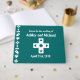 Create a fun custom way for the guests of your geeky wedding or event to leave their names and messages for the happy couple. A deep teal background is decorated with a white D-pad on both the front and the back. Alongside the spine a pattern of pixelated 8-bit hearts, joysticks, D-pads, and computer mice creates a cute accent. The front has a sample message, names, and date that can be customized to make this book unique for the event.