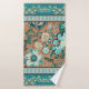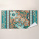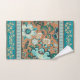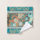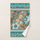 Belle serviette conçue sur mesure remplie de divers motifs avec des fleurs amusantes, feuille d'or, estampage bleu dans les tons turquoise, vert, brun, or et rouille. Parfait pour les salles de bain, cadeaux et plus encore.
