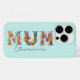 Pretty phone case features watercolor floral letters that spell out M-U-M with customizable "extraordinaire" in modern script, on pastel blue background.